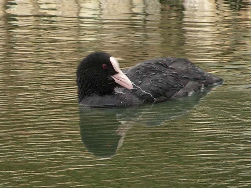 | © Ph.Hillion photo prise le 10 février 2007 | Beaucoup plus proche de nous (bien que sur ses gardes) ce Foulque macroule pêche au milieu de l'Essonne. Il y en a beaucoup dans ce coin de rivière. |