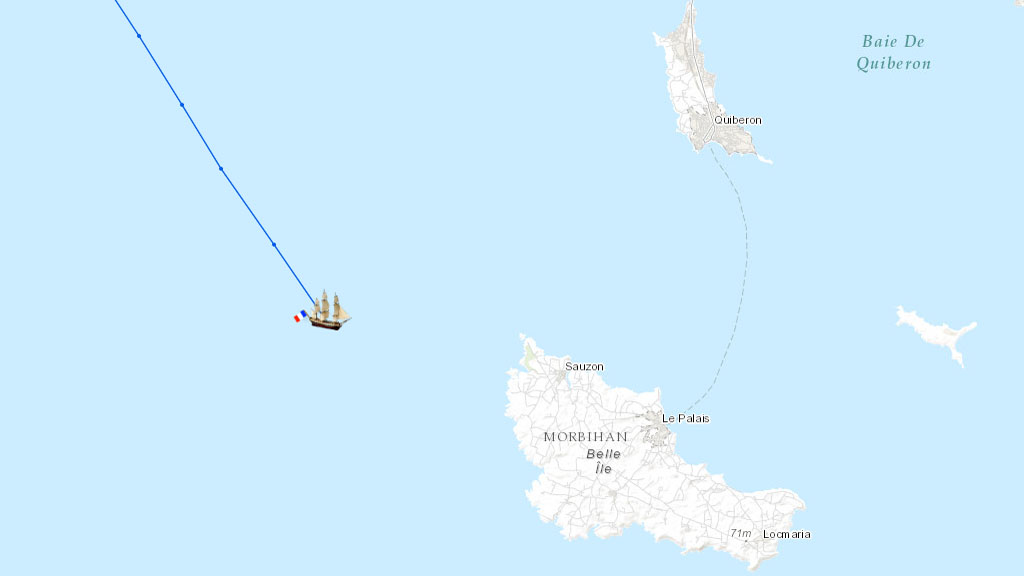 | Elle devait passer entre Belle-Île et Quiberon, mais elle a bifurqué après Groix. | |