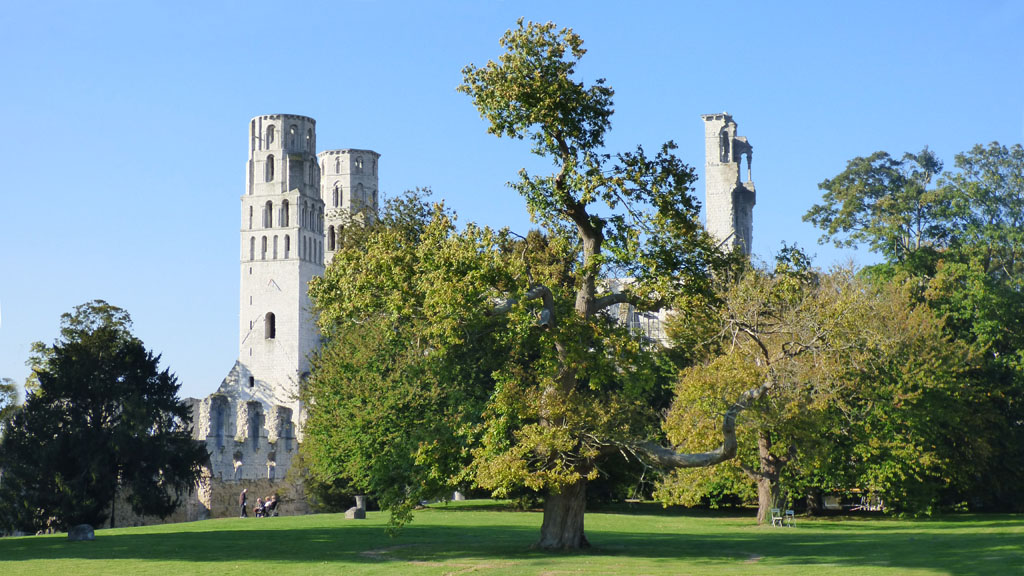 Superbe vue des ruines de l'abbaye de Jumiège, vous pourrez admirer le chêne au milieu du parc de l'abbaye