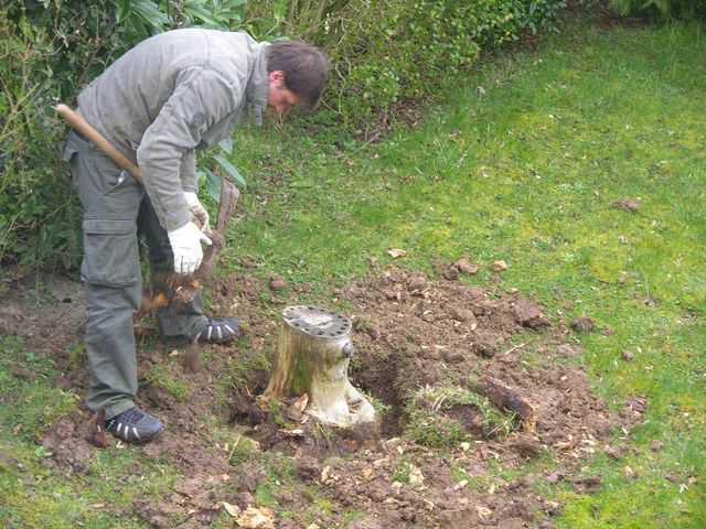 | Le jardinier l'attaque à la pioche, elle est très profonde, mais avec Maryvonne en mai 2003, nous avions enlevé toutes les racines latérales | |