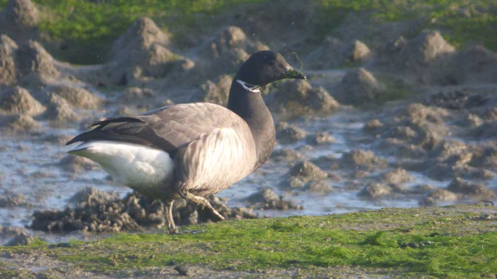 | © Ph.Hillion photo prise le 8 janvier 2015 | Une oie sur la pelouse, à la limite de la marée haute |